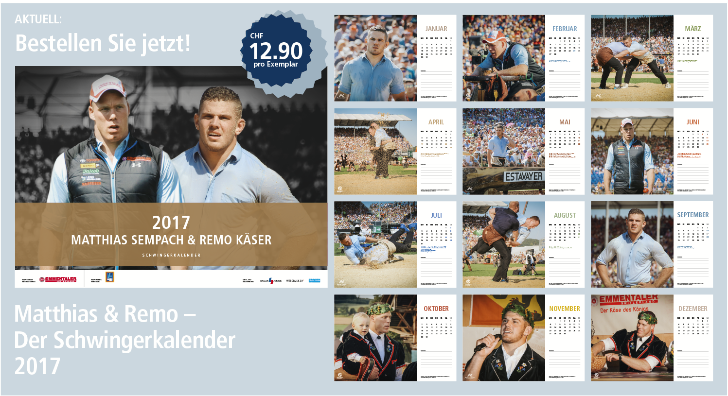 Bestellen Sie jetzt den ultimative Schwingerkalender von Matthias Sempach und Remo Käser mit Rückblick auf das 44. Eidgenössischen Schwing- und Älplerfest in Estavayer-le-Lac.